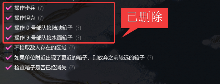 Nobeta 自动捡箱子并不是一个简单的功能,其中包括了多个设置。 例如让哪类兵去捡,让哪个编队去捡,是否要避开一些东西,在什么情况下不要捡等等。 Gen3、Gen2 | 陆地寻宝 Gen3、Gen2 | 水面寻宝 Gen3、Gen2 | 避开敌人 Gen3、Gen2 | 检查箱子是否已经消失 Gen3、Gen2 | 忽视矿车
