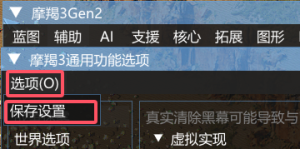 ①在每个功能板块的左上角“选项”中,你可以点击“保存设置”,下次进行游戏会自动加载。